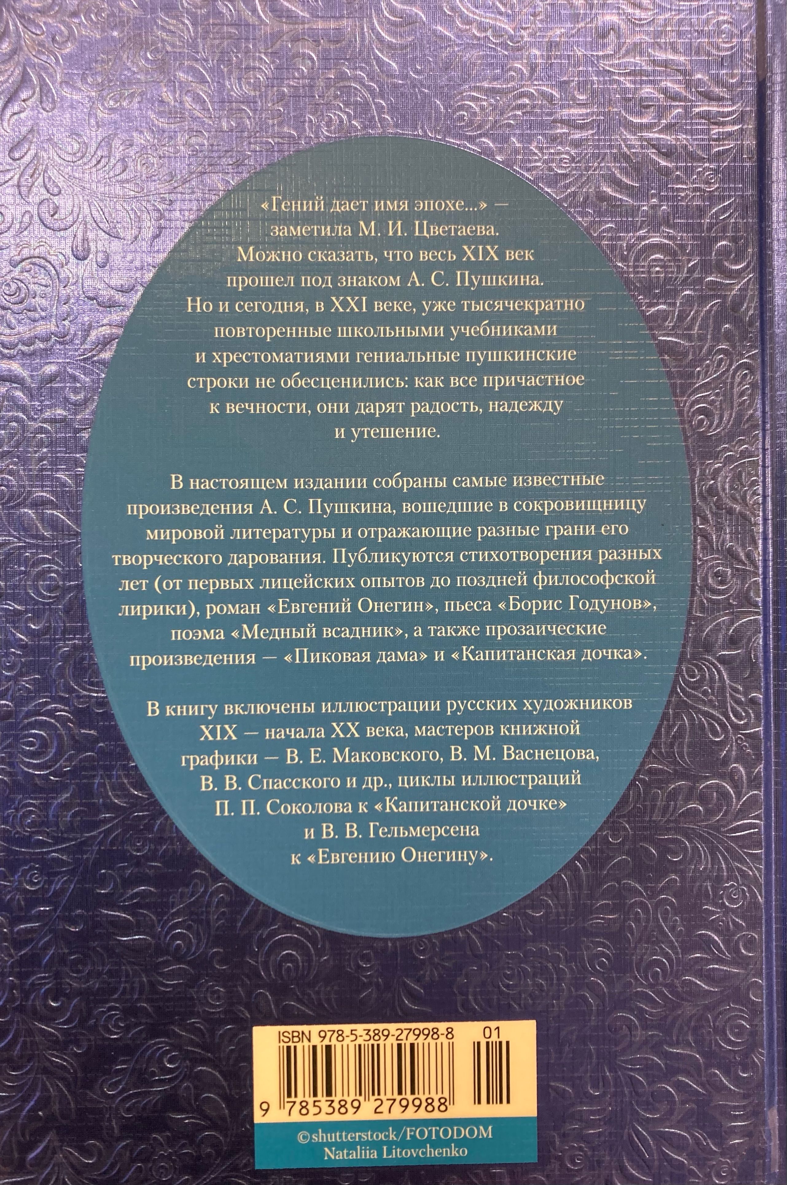 В книгу включены иллюстрации русских художников XIX — начала ХХ века, мастеров книжной графики — В. Е. Маковского, В. М. Васнецова, В. В. Спасского и др., циклы иллюстраций П. П. Соколова к «Капитанской дочке» и В. В. Гельмерсена к «Евгению Онегину».