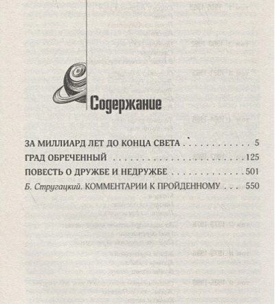 В этот том вошли «За миллиард лет до конца света»; «Град обреченный»; «Повесть о дружбе и недружбе».