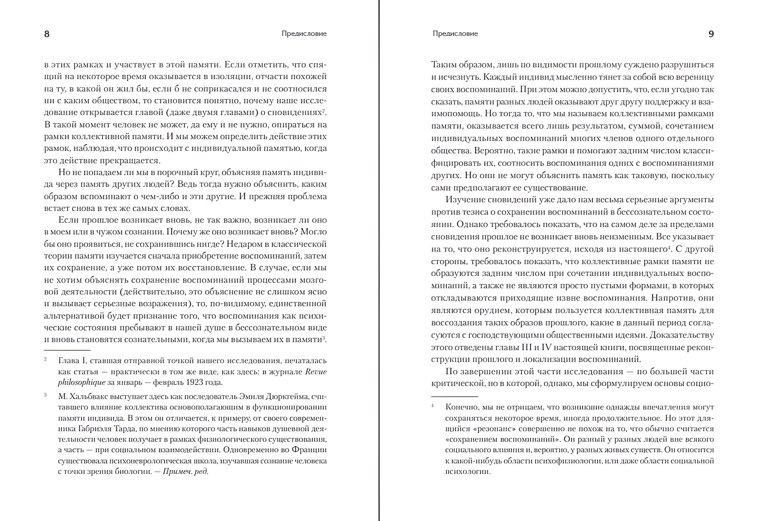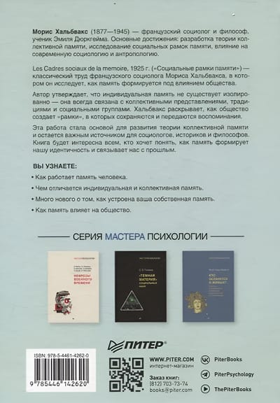 Классическая работа французского социолога Мориса Хальбвакса, впервые вышедшая еще в 1925 году, оказалась широко востребованной в гуманитарных науках последних десятилетий. Как показывает автор, даже в сознании отдельного человека запоминание и припоминание фактов обусловлено по ряду важнейших параметров «рамками» и «ориентирами» которые создаются обществом (речью, представлениями о пространстве и времени и т. д.).