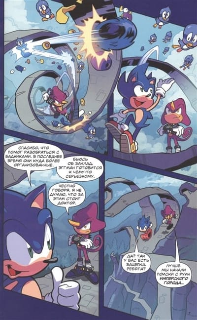 Приключения самого быстрого ёжика на планете теперь в формате комикса! Увлекательные комиксы с абсолютно оригинальными сюжетами не повторяют ни фильм, ни телесериал! Перевод и макет подготовлены группой фанатов Соника Diamond Dust при участии Сыендука! После внезапного исчезновения Доктора Эггмана Соник получает сообщение о том, что злобный доктор обнаружен в одном селении. Кто же прячется под личиной Доктора Эггмана? В этом захватывающем приключении вас ждёт множество неожиданных сюрпризов! С помощью старых и новых друзей Соник успеет повсюду!