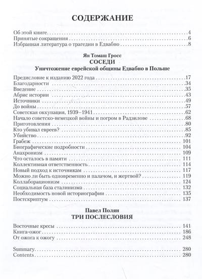 Книгу сопровождают три послесловия, написанных историком Павлом Поляном. Первое посвящено истории так называемых «восточных кресов» — географического ареала, к которому принадлежит и Едвабно. Второе — собственно книге Яна Гросса — этой книге-ожогу — и тому гигантскому резонансу, который она вызвала. И третье — другим произведениям в этом своеобразном жанре «произведения-ожога».