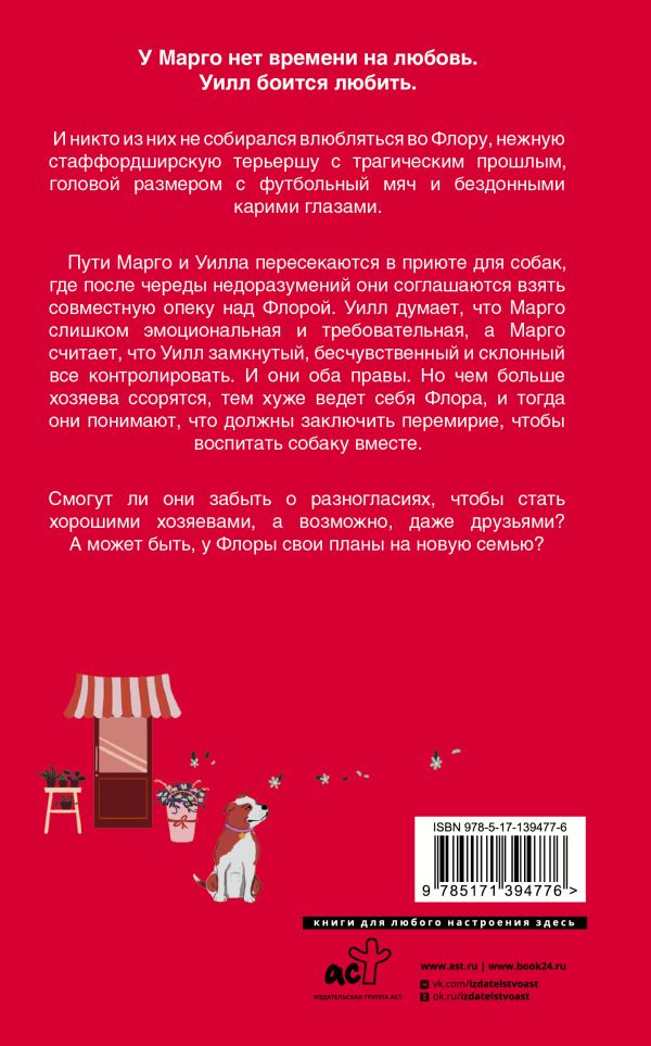 У Марго нет времени на любовь. Уилл боится любить. И никто из них не собирался влюбляться во Флору: нежную стаффордширскую терьершу с трагическим прошлым, головой размером с футбольный мяч и бездонными карими глазами. Пути Марго и Уилла пересекаются в приюте для собак, где после череды недоразумений они соглашаются взять совместную опеку над Флорой. Уилл думает, что Марго слишком эмоциональная и требовательная, а Марго считает, что Уилл замкнутый, бесчувственный и склонный все контролировать. И они оба правы. Но чем больше хозяева ссорятся, тем хуже ведет себя Флора, и тогда они понимают, что должны заключить хоть какое-то перемирие, чтобы воспитать собаку вместе. Смогут ли они отложить в сторону разногласия, чтобы стать хорошими хозяевами, а возможно, даже друзьями? А, может быть, у Флоры свои планы на новую семью?
