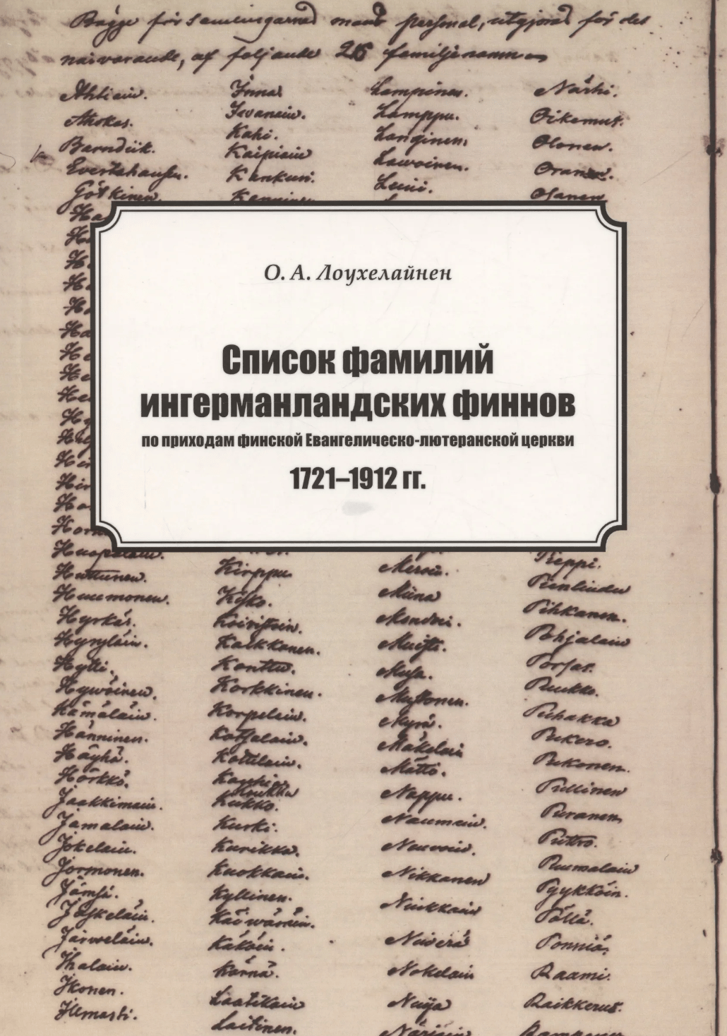 Список фамилий прихожан ингерманладских финнов по приходам финской Евангелическо-лютеранской церкви. 1721-1912 гг