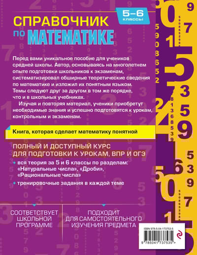 Справочник по математике поможет школьникам 5—6 классов не только подготовиться к урокам, экзаменам и ВПР, но и понять этот сложный предмет! Основываясь на богатом опыте преподавания и подготовки к экзаменам, автор систематизировал обширные теоретические сведения по основным математическим разделам и изложил их простым и доступным языком.