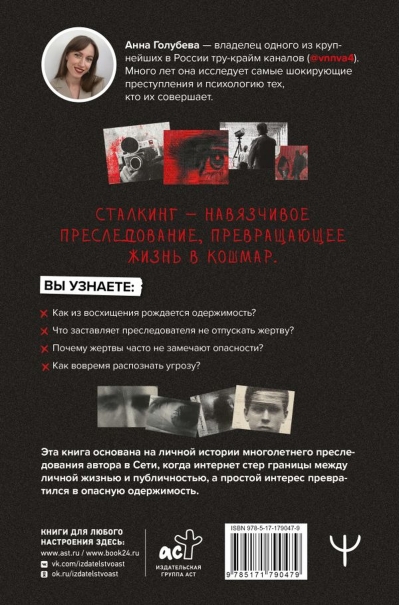 Автор этой книги — один из самых популярных тру-крайм-блогеров России с миллионами просмотров. Много лет она исследовала феномен сталкинга и сейчас впервые рассказывает о том, что значит жить в роли жертвы преследователя.