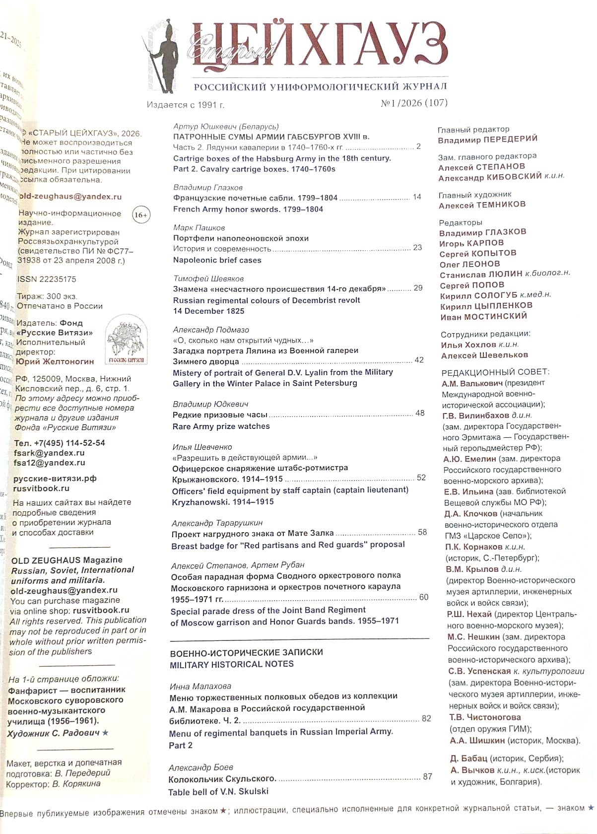 Старый Цейхгауз № 107 (1/2026). Униформа. Исторический костюм. Награды. Оружие. Знамена. Геральдика