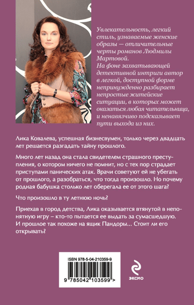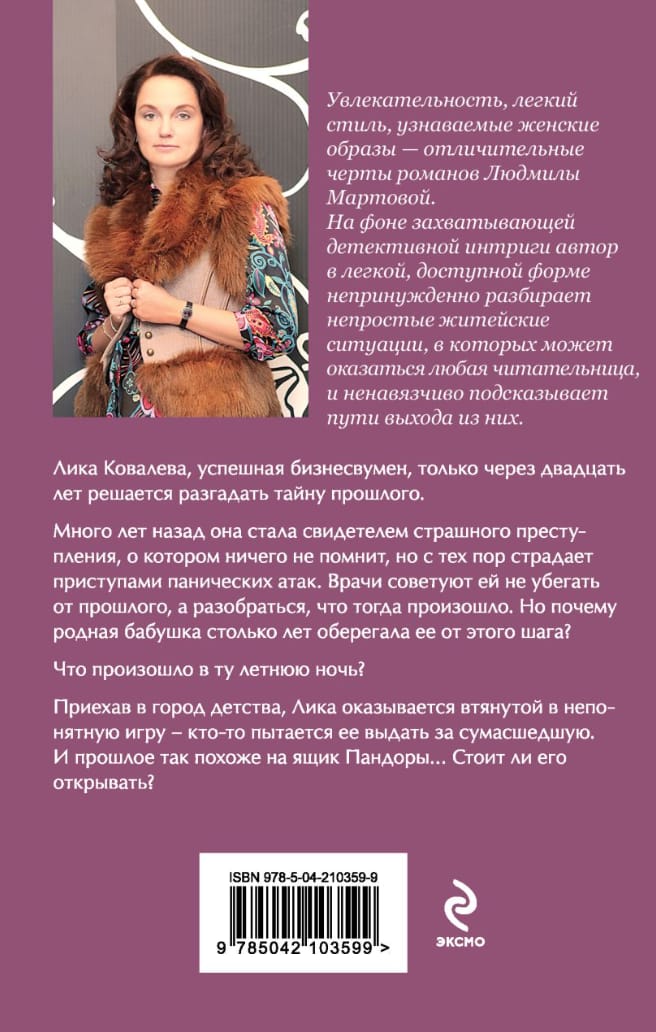 Приехав в город детства, Лика оказывается втянутой в непонятную игру — кто-то пытается ее выдать за сумасшедшую. И прошлое так похоже на ящик Пандоры… Стоит ли его открывать?