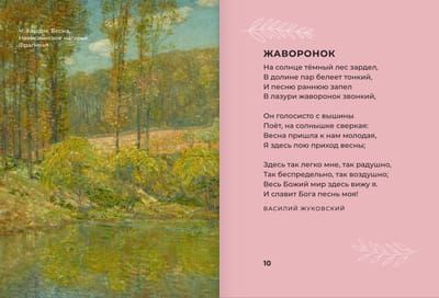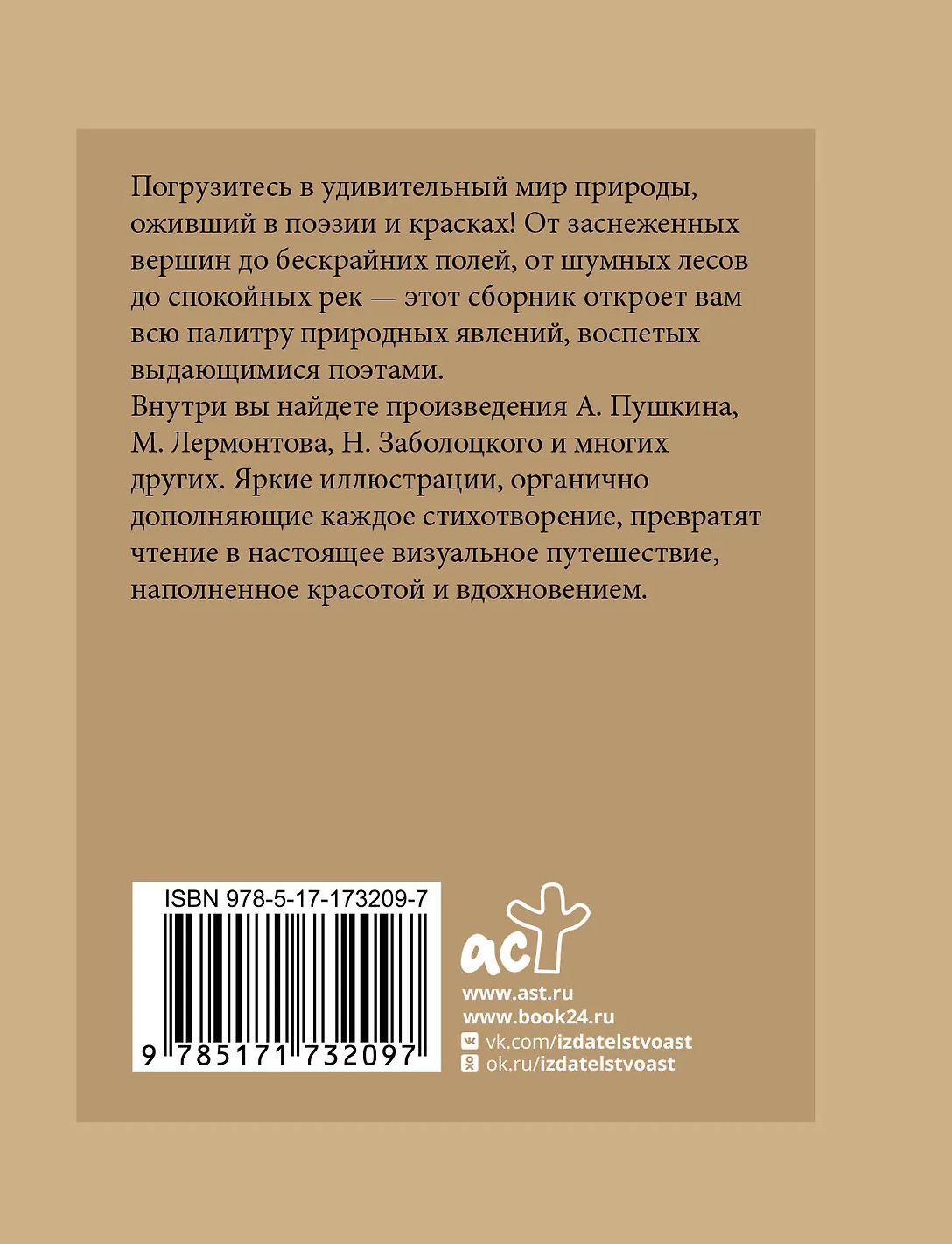 Внутри вы найдете произведения А. Пушкина, М. Лермонтова, Н. Заболоцкого и многих других. Яркие иллюстрации, органично дополняющие каждое стихотворение, превратят чтение в настоящее визуальное путешествие, наполненное красотой и вдохновением.