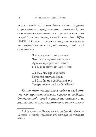 Поэзия Анненского отличается особым взглядом на мир: явления и предметы становятся больше самих себя, приобретая особый ирреальный ореол. Мистический эффект его стихов будет интересен и современному поколению читателей, чувствительных к потустороннему.