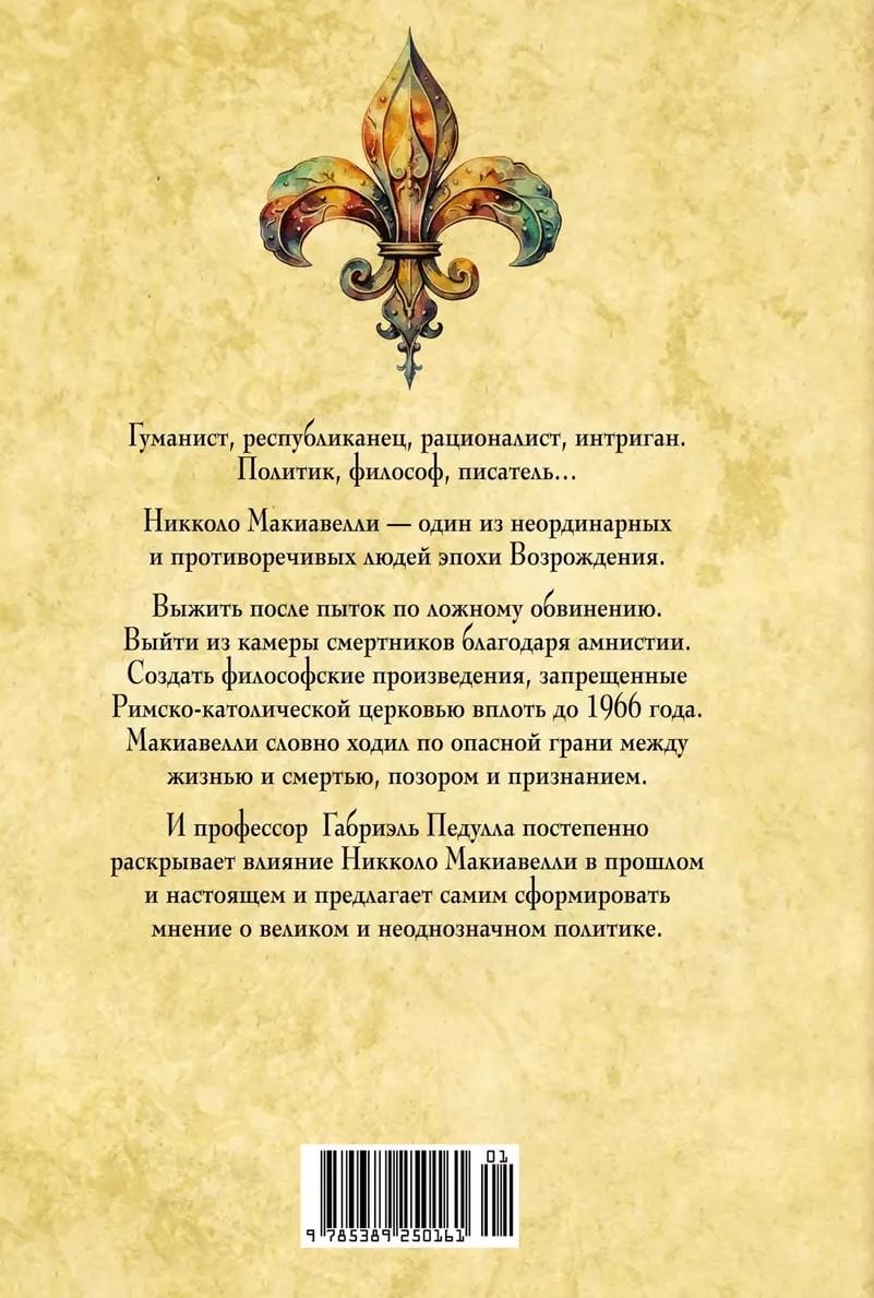 История оживает на страницах книги: миссии, интриги, обвинения, опала, амнистия… Макиавелли жил и действовал решительно, с готовностью принимая новые знания и расширяя свое мировоззрение. Не одно поколение политиков, философов и литераторов изучало, оспаривало, восхваляло и продвигало философские трактаты Никколо Макиавелли. Профессор Габриэль Педулла не просто рассказывает о жизни Макиавелли, но и беспристрастно анализирует его труды «Государь», «О военном искусстве» и «Рассуждения о первой декаде Тита Ливия».