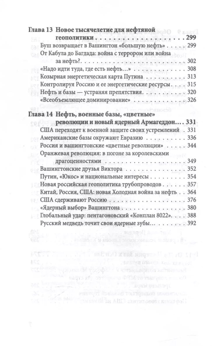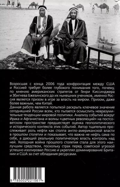 Возросшая с конца 2006 года конфронтация между США и Россией требует более глубокого понимания того, почему, по мнению американских стратегов от Генри Киссинджера и Збигнева Бжезинского до их нынешних учеников, именно Россия является призом в игре за власть на миром. Призом, даже более важным, чем Китай. Данная работа является попыткой раскрыть ключевое значение сегодняшней России всем, кто пытается осмыслить невразумительные тенденции мировой политики. Анализу событий вокруг Ирака и Афганистана и волны «цветных революций» на постсоветском пространстве предшествует оценка геополитического и исторического контекста этих событий. Автор тщательно прослеживает роль нефти как столпа англо-американской власти в прошлом столетии и показывает, что важна не нефть сама по себе, а дающий реальную политическую власть контроль над ней. Холодная война прошлого столетия стала для этого наилучшим средством, поскольку страх перед советской угрозой успешно изолировал Россию и укреплял доминирование Британии и США за счет обладания ресурсами. Эта книга прослеживает роль нефти как столпа англо-американской власти, начиная со второй половины XIX века. Но лейтмотивом является не нефть сама по себе, а дающий политическую власть геополитический контроль над ней.