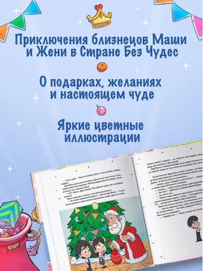 Близнецы Маша и Женя почти перестали ждать чудес. На школьной ёлке им единственным не достаётся подарков, но зато они получают мешок Деда Мороза и оказываются в другом мире.