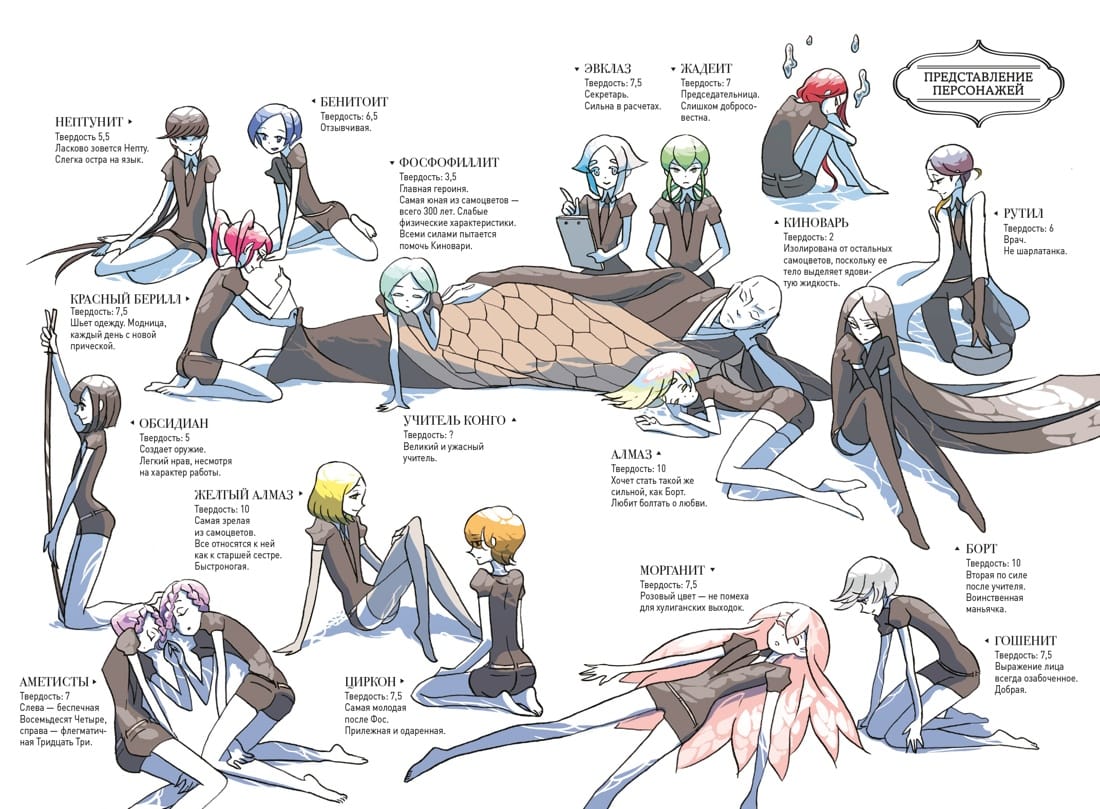 Двадцать восемь драгоценных камней бессмертны и могут возрождаться даже из осколков. Но в их мире нет конца и края битвам с лунянами, которые жаждут похитить самоцветов и сделать из них украшения. Перед вам невероятная история о драгоценностях — сильных, порой хрупких и удивительно прекрасных! В книгу вошли главы с 1-й по 13-ю, а также две дополнительные главы.