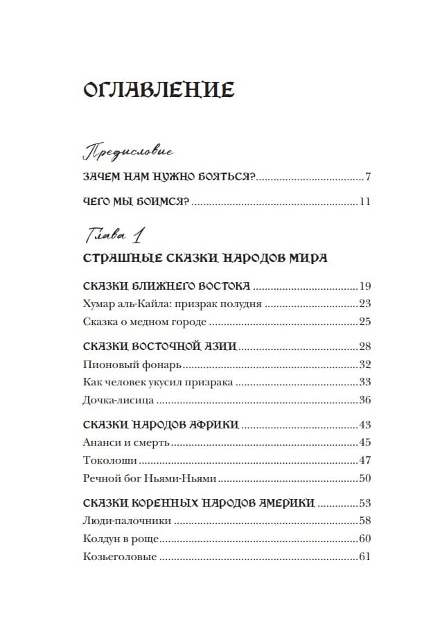 От древнейших мифов и сказок народов мира к литературным переложениям Братьев Гримм и Шарля Перро — и до современных крипипаст и городских легенд: вы узнаете, какие ужасы скрываются в ближневосточных легендах, чем пугают детей африканские племена, почему стоит обходить стороной красоток-кицунэ, что русская Баба Яга — не такая уж простая старушка и как люди смотрят на страшное в разные времена.