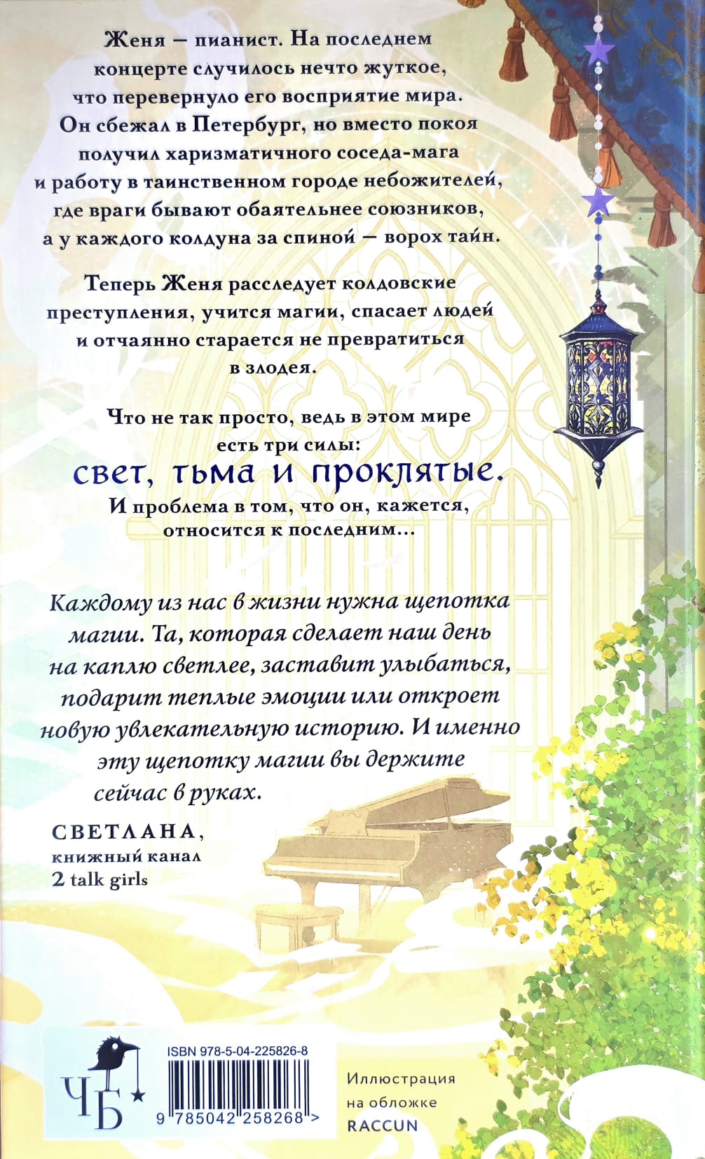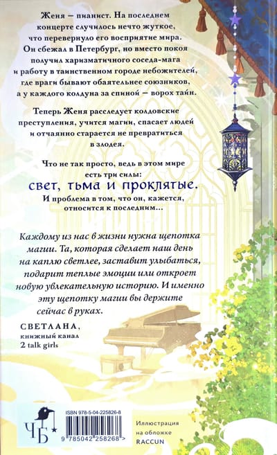 Женя — пианист. На последнем концерте случилось нечто жуткое, что перевернуло его восприятие мира. Он сбежал в Петербург, но вместо покоя получил харизматичного соседа-мага и работу в таинственном городе небожителей, где враги бывают обаятельнее союзников, а у каждого колдуна за спиной — ворох тайн.
