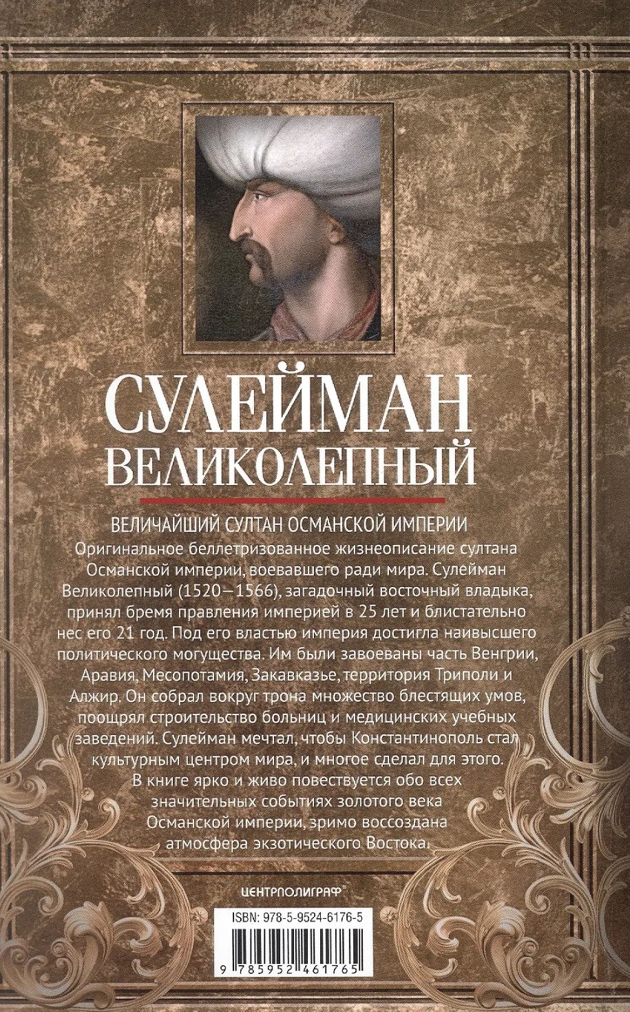 Оригинальное беллетризованное жизнеописание Сулеймана Великолепного, султана Османской империи – мудреца, поэта и воина, который завоевал часть Венгрии, Аравии, Месопотамии, Закавказья, территории Триполи и Алжира, но не устоял перед чарами своенравной рабыни-славянки, ставшей единственной любимой женщиной султана Востока.