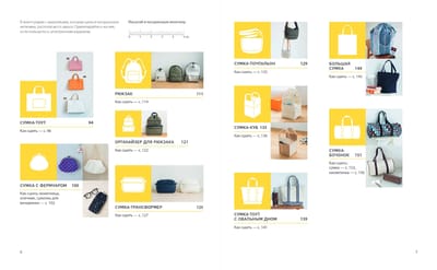 Сумка с боковым карманом, сумка в сумке, сумка-кошелек, сумка с кардхолдером, рюкзаки, шопперы, экологические сумки, сумки для школы, сумки для обуви, декоративные сумки, сумки для похода в магазин, сумки с фермуаром, сумки через плечо, сумки с овальным дном. Все, что только может пригодиться в жизни. Выбирайте и приступайте к работе. У вас точно все получится!