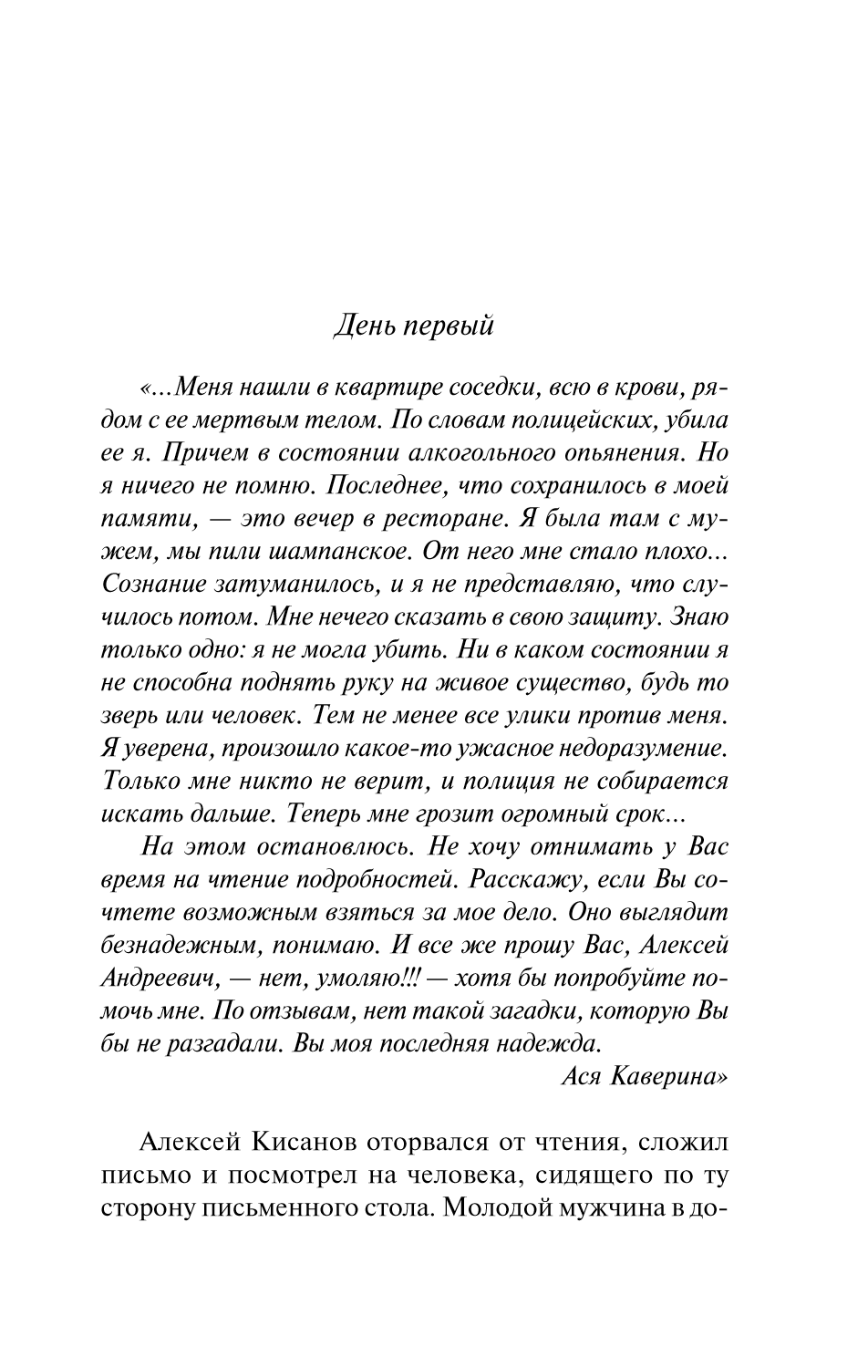 Надеюсь, Вы сочтете возможным взяться за мое дело. Оно выглядит безнадежным, понимаю. И все же прошу Вас, Алексей Андреевич, — нет, умоляю!!! — хотя бы попробуйте помочь мне. По отзывам, нет такой загадки, которую Вы бы не разгадали. Вы моя последняя надежда…»