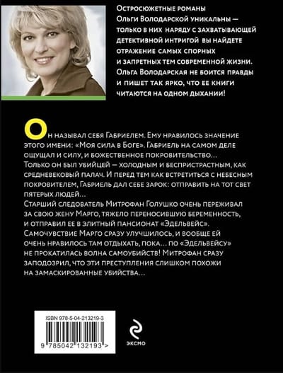 Старший следователь Митрофан Голушко очень переживал за свою жену Марго, тяжело переносившую беременность, и отправил ее в элитный пансионат «Эдельвейс». Самочувствие Марго сразу улучшилось, и вообще ей очень нравилось там отдыхать, пока… по «Эдельвейсу» не прокатилась волна самоубийств! Митрофан сразу заподозрил, что эти преступления слишком похожи на замаскированные убийства…