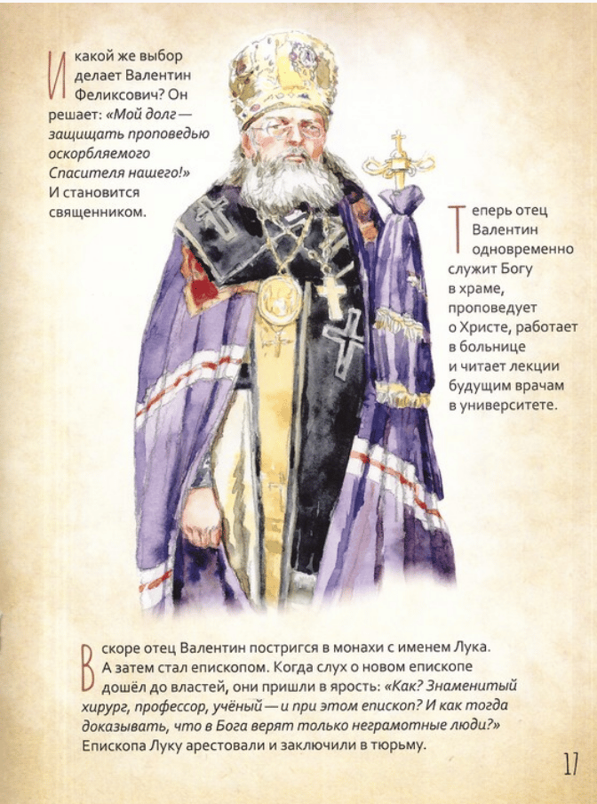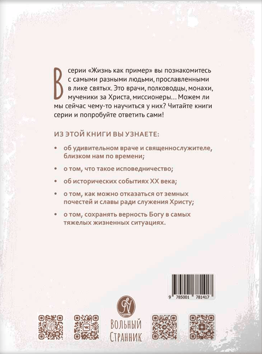 В этой книге рассказывается о жизни человека с удивительной судьбой. Святитель Лука Крымский (1877-1961) — блестящий хирург, учёный, духовный писатель и автор книг по медицине. Он стал священником в сложное время гонений на Церковь, прошёл тюрьмы, ссылки и пытки. Вся его жизнь -это подвиг исповедничества. Он любил Христа и до конца жизни служил людям, и в особенности страждущим, с невероятной любовью и самоотверженностью. Святитель Лука считал лечение больных величайшим делом, которое есть подражание Самому Христу.