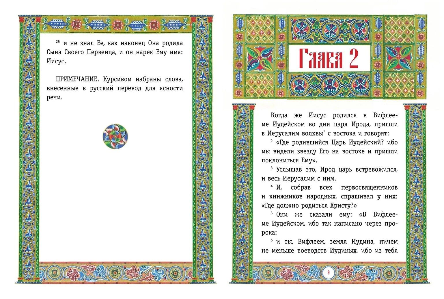 Четыре канонические книги Евангелия апостолов Матфея, Марка, Луки и Иоанна даны в последней редакции синодального перевода на современный русский язык, с учетом норм современной орфографии. Перевод предоставлен Издательством Московской Патриархии. Его возможно читать неподготовленному человеку, не знакомому ранее с этой великой Книгой. Текст набран крупным шрифтом, разбитым на церковные зачала.