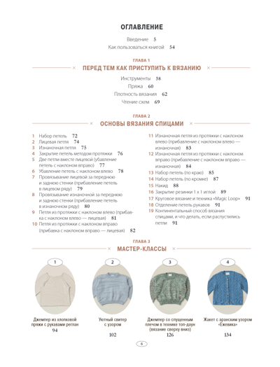 - Иллюстрированная глава с основами вязания на спицах и видеоуроками;