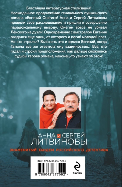 Анна и Сергей Литвиновы провели свое расследование и пришли к совершенно парадоксальному выводу: Онегин вовсе не убивал Ленского на дуэли! Одновременно с выстрелом Евгения раздался еще один, от которого и погиб молодой поэт. Но кто стрелял? Выяснить это и взялся Евгений, когда Татьяна все же ответила ему взаимностью… Все, кто гадал и строил предположения, как дальше сложились судьбы героев романа, наконец-то узнают об этом!