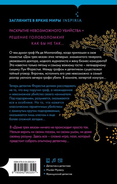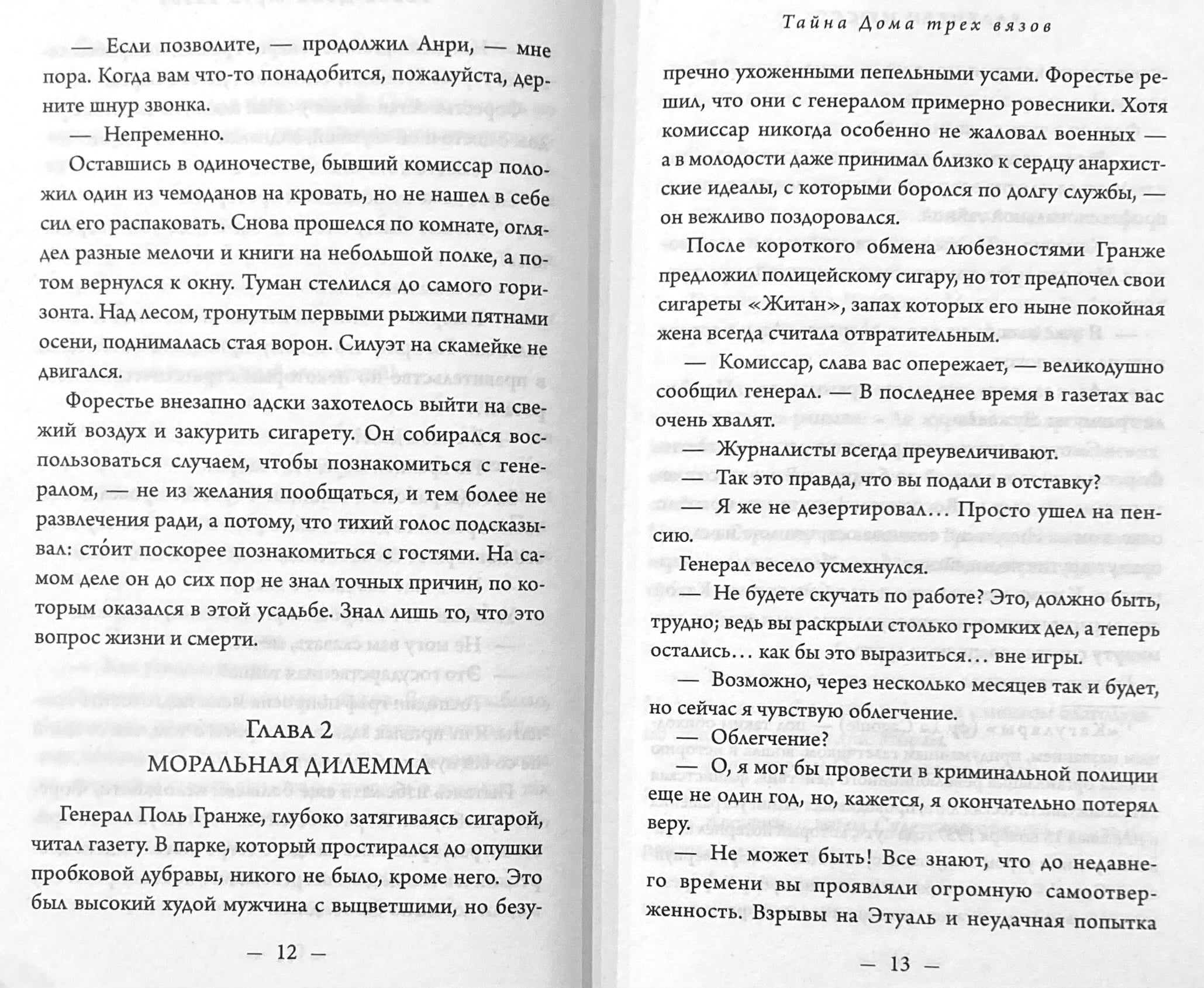 О чем думал граф Ив де Монталабер, когда приглашал в свое поместье «Дом трех вязов» этих четверых: знаменитого генерала, уважаемого доктора, модного журналиста и жену бизнес-конкурента? Это известно только пятому и самому важному гостю — легендарному сыщику Луи Форестье. Между графом и детективом существовал тайный уговор. Впрочем, исполнить его уже невозможно: в самый разгар уютного вечера графа убили. В комнате, запертой изнутри…