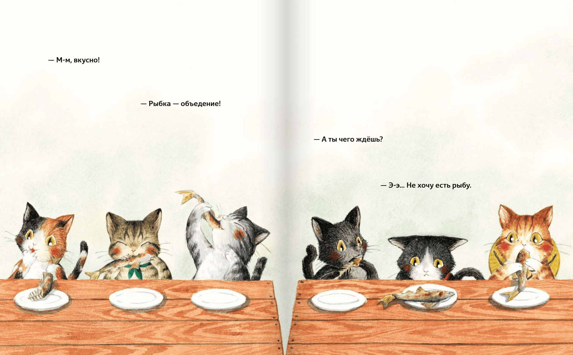 Все обитатели Кошачьей деревни любят рыбу. Но один котик почему-то отказывается присоединиться к друзьям на пикнике.