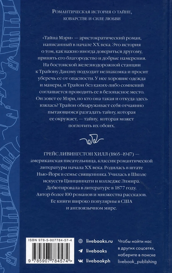 «Тайна Мэри» — аристократический роман, написанный в начале XX века. Это история о том, как важно иногда довериться другому, принять его благородство и добрые намерения.