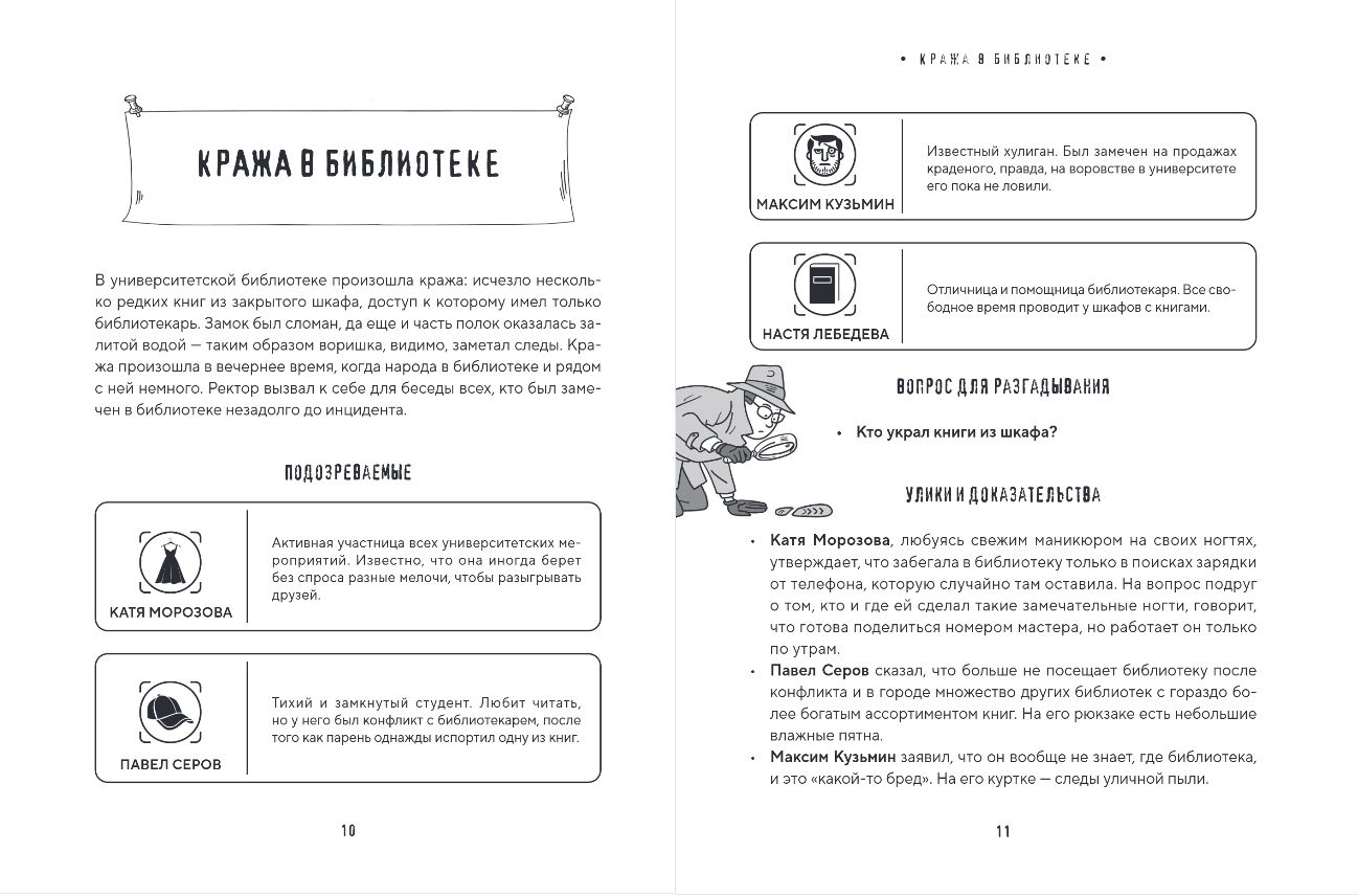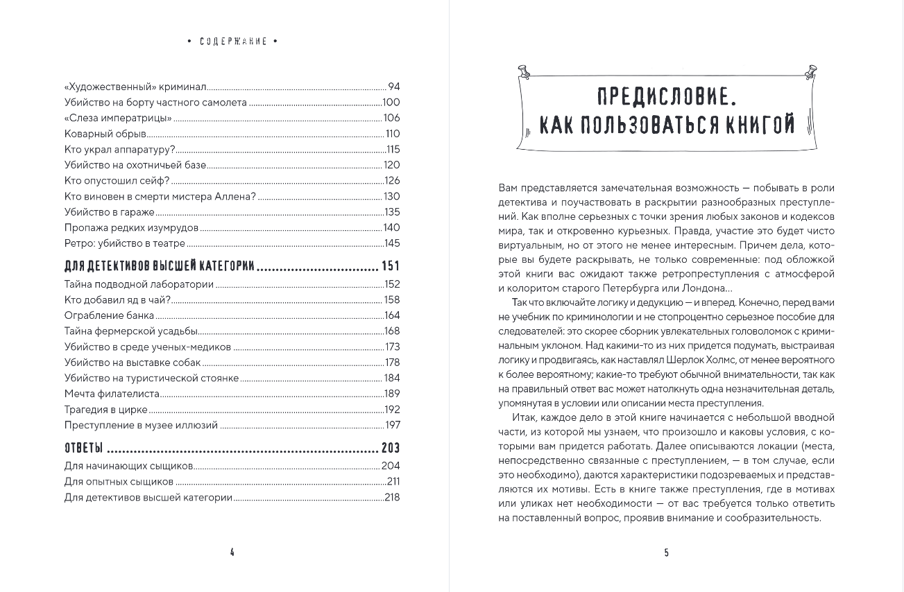С этой серией книг вы сможете примерить на себя роль настоящего сыщика! В книгах собраны самые разные детективные задачки, начиная от кражи денег и заканчивая жутким убийством. Вас ждёт 40 головоломок любого уровня сложности: их будет под силу разгадать как начинающим детективам, так и специалистам высшей категории.