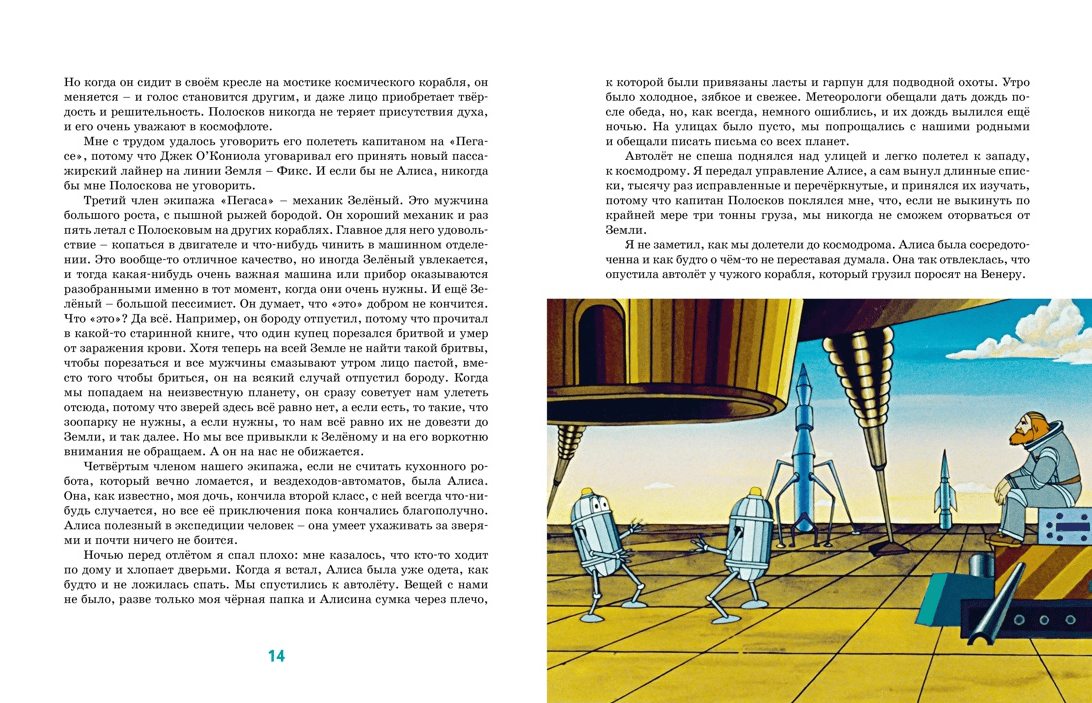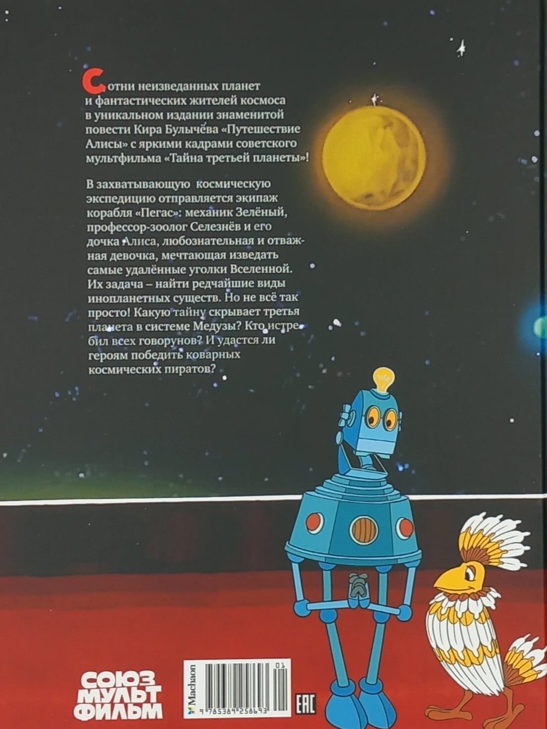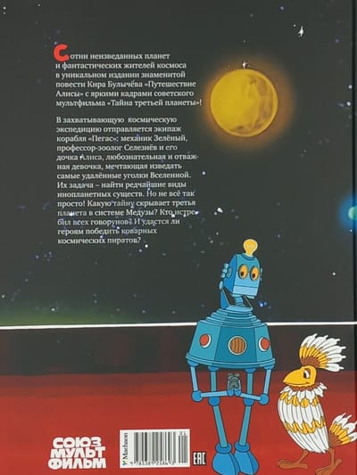 Сотни неизведанных планет и фантастических жителей космоса в уникальном издании знаменитой повести Кира Булычёва «Путешествие Алисы» с яркими кадрами советского мультфильма «Тайна третьей планеты»! В захватывающую космическую экспедицию отправляется экипаж корабля «Пегас»: механик Зелёный, профессор-зоолог Селезнёв и его дочка Алиса, любознательная и отважная девочка, мечтающая изведать самые удалённые уголки Вселенной. Их задача – найти редчайшие виды инопланетных существ. Но не всё так просто! Какую тайну скрывает третья планета в системе Медузы? Кто истребил всех говорунов? И удастся ли героям победить коварных космических пиратов?