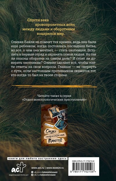 Оливия Бейли не помнит тех времён, ведь она была ещё ребёнком, когда состоялась последняя битва, но всё, о чём она мечтает, — стать охотницей. Вступить в первый отряд и охранять покой людей. Но так ли опасны оборотни на самом деле? И стоит ли доверять охотникам? Оливия сделает всё, чтобы найти ответы на свои вопросы.