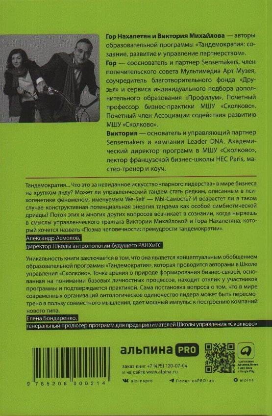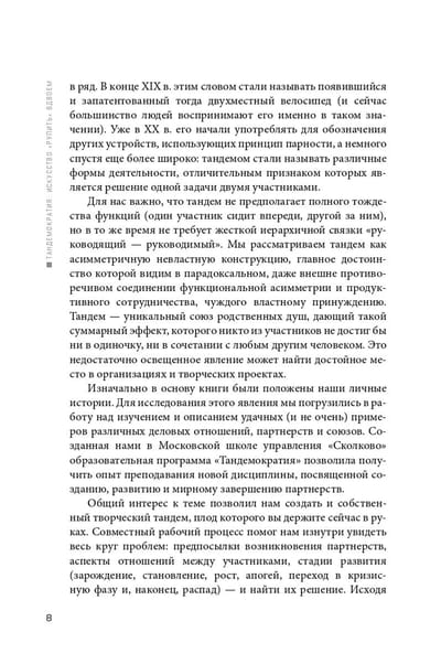 Тандем двух личностей — элементарная частица проекта, а также основа успеха в любой области: бизнесе, творчестве, спорте, политике и даже в семье. Каждое партнерство начинается с тандема. Авторы раскрывают механизмы создания и функционирования эффективного тандема, а также представляют новый взгляд на построение партнерства и создание здоровой, устойчивой и неуязвимой организации.