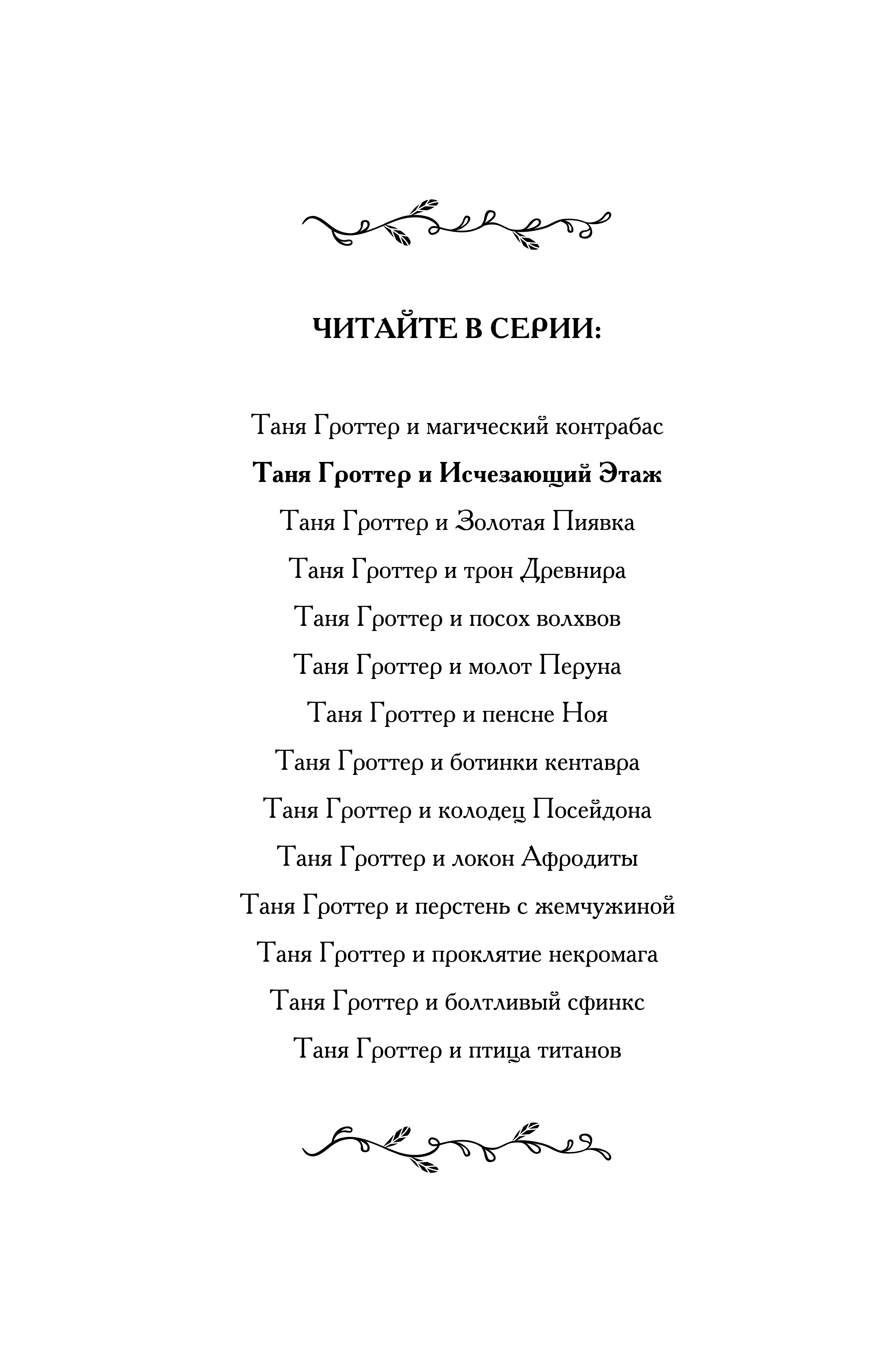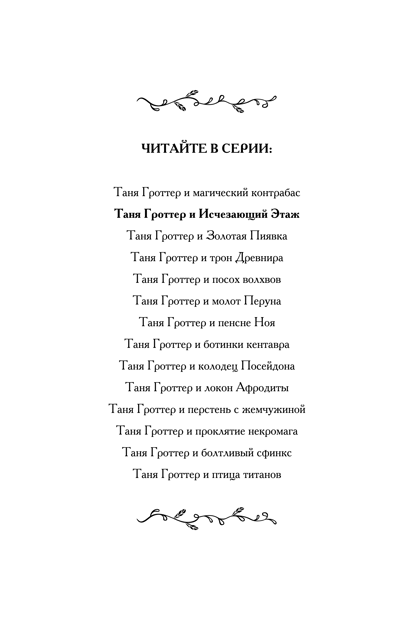 Тане Гроттер не повезло! Пока Сарданапал, Медузия Горгонова и другие преподаватели отстраивают разрушенную школу магии Тибидохс, учеников отправляют по домам. Вот и Таня вынуждена вернуться в Москву, в семью Дурневых. Да ещё взять с собой целый чемодан склочных привидений. Ну да ничего! За время обучения в Тибидохсе Таня успела кое-чему научиться, поэтому дяде Герману и тёте Нинели придётся несладко… И вот наконец наступает пора вернуться в Тибидохс. Его восстановили, и теперь он даже лучше прежнего, но вот Исчезающий Этаж… С ним творится что-то невероятное. Никто из тех, кто отважился проникнуть туда, не вернулся назад. Или всё же вернулся?..