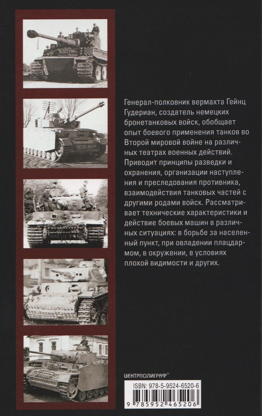 Знаменитый генерал нацистской Германии Гейнц Гудериан рассказывает о возникновении танковых войск, вооружении и особенностях боевого применения этих машин, сложностях и ошибках в их использовании. Гудериан был провозвестником, теоретиком, организатором и практиком танкового дела в своей стране. По свидетельству военных теоретиков и политиков, эта книга - лучшее из всего того, что было написано немецкими генералами.