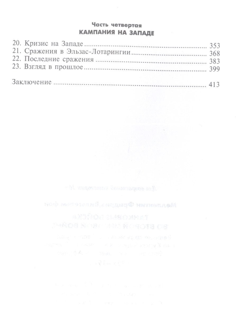 В книге бывшего генерала немецкой армии Фридриха Вильгельма фон Меллентина дана профессиональная оценка военных событий 1939—1945 годов. Автор показывает значение танковых войск на различных театрах военных действий от Европы до Северной Африки. Описывает действия танков на советско-германском фронте, уделяя основное внимание Сталинградской и Курской битвам, а также сражениям на Украине и в Польше.