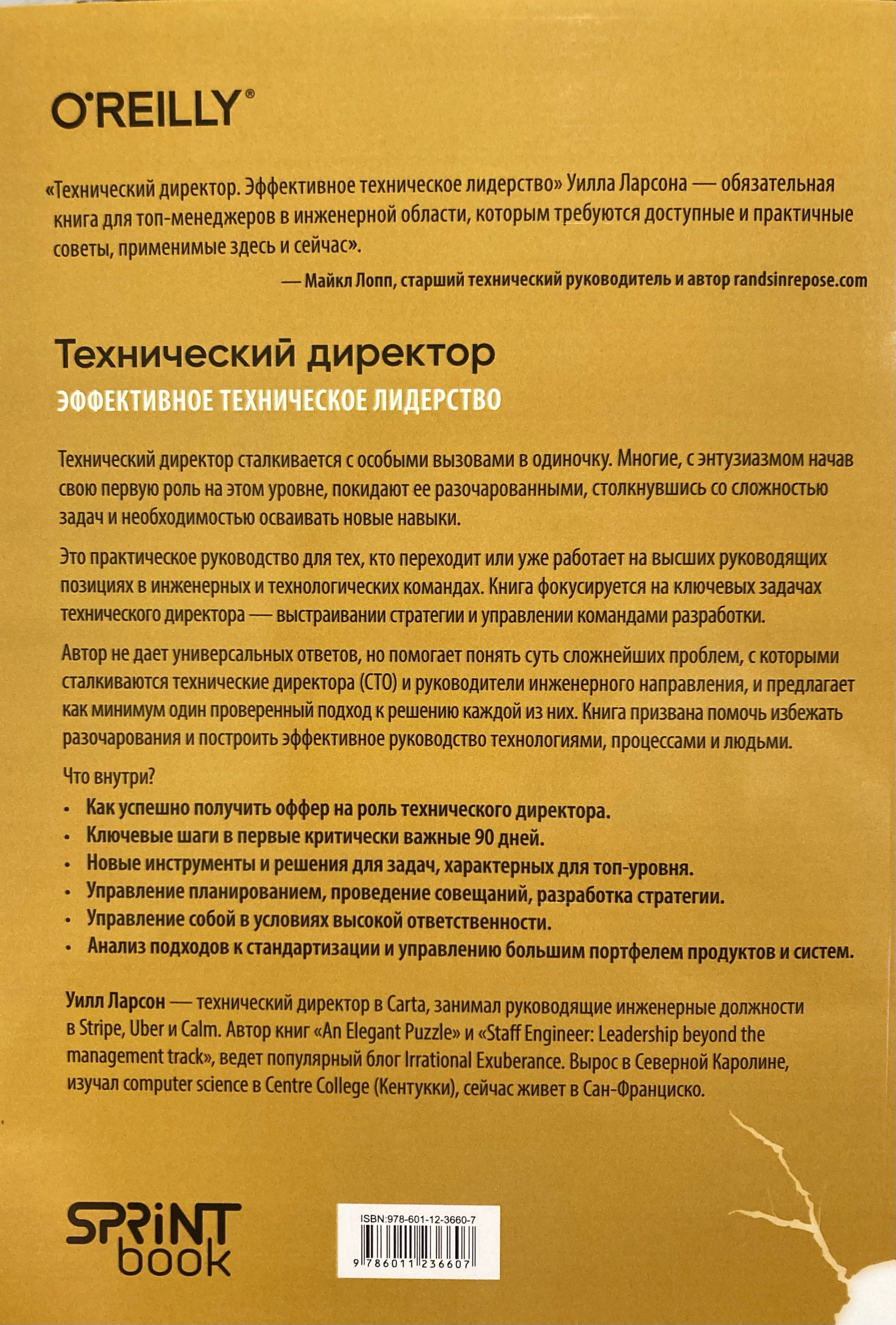 Технический директор сталкивается с особыми вызовами в одиночку. Многие, с энтузиазмом начав свою первую роль на этом уровне, покидают ее разочарованными, столкнувшись со сложностью задач и необходимостью осваивать новые навыки. Это практическое руководство для тех, кто переходит или уже работает на высших руководящих позициях в инженерных и технологических командах. Книга фокусируется на ключевых задачах технического директора — выстраивании стратегии и эффективном управлении командами разработки. Автор не дает универсальных ответов, но помогает понять суть сложнейших проблем, с которыми сталкиваются технические директора (CTO) и руководители инженерного направления, и предлагает как минимум один проверенный подход к решению каждой из них.