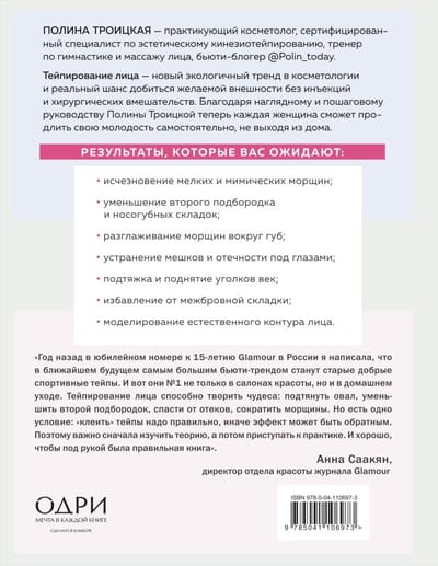 Стремитесь к гладкой и подтянутой коже? Красота и молодость без лишних затрат и рискованных процедур — возможна! В книге косметолога Полины Троицкой вы найдете подробное руководство по использованию нового тренда в косметологии — тейпирования лица в домашних условиях. Более 50 аппликаций, а также онлайн-уроки, на которые можно перейти через QR-коды в книге, помогут каждой женщине добиться желаемого контура лица без морщин и отечностей. Никакой хирургии и инъекций молодости. Все, что вам понадобится — это яркие эластичные ленты, зеркало и книга!