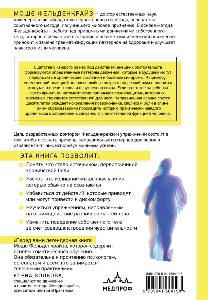 Получив серьезные травмы и пытаясь исцелиться от них, Моше Фельденкрайз неожиданно осознал глубокую связь между телесными страданиями и психическим здоровьем. Восстанавливаясь, он сделал революционные открытия, кульминацией которых стала разработка метода, который теперь носит его имя. В этой книге Фельденкрайз углубляется в неврологию, предысторию, развитие ребенка, гравитацию и антигравитацию, рефлексивное и приобретенное поведение, влияние эмоций, особенно беспокойства, на осанку и, самое главное, неразрывность тела и разума.