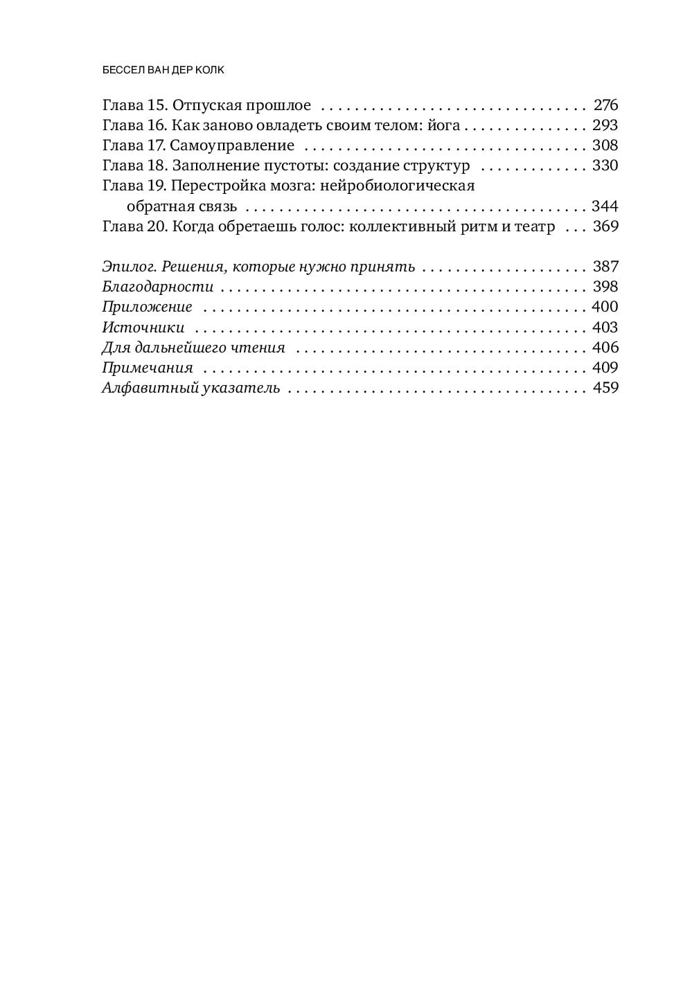 Все мы сталкивались с физическими травмами и имеем о них представление. А что мы знаем о психологических? Ведь, как бы банально это ни звучало, зачастую моральная травма накладывает бОльший отпечаток на нашу жизнь, чем рана на теле. Порез - быстро затянется, перелом - срастется, а вот как проявит себя психологическая травма в сознательном возрасте, каким образом она способна помешать нормальной жизни и что с этим можно сделать? Доктор Бессел Ван дер Колк, один из самых известных в мире специалистов по травме, провел более 30 лет, изучая посттравматическое стрессовое расстройство. Объединяя все исследования в области травмы, свой опыт и истории пациентов, в этой книге он объясняет, как травма буквально меняет тело и мозг, лишая переживших ее нормальной жизни, близких отношений и самоконтроля. Но есть и хорошие новости - автор расскажет, как мы можем помочь себе и своим близким в этой ситуации. Исследуя различные возможности исцеления: от медитации, йоги и спорта до занятий в театральных кружках - доктор Бессел предлагает новые пути к выздоровлению, активируя естественную нейропластичность мозга. Тем самым доктор дарит надежду на выздоровление и полноценную жизнь тем, кто столкнулся с травмой. Внимание! Информация, содержащаяся в книге, не может служить заменой консультации врача. Перед совершением любых рекомендуемых действий необходимо проконсультироваться со специалистом.