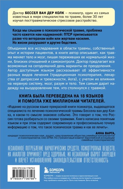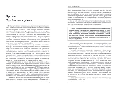 Есть и хорошие новости. Последствия психической травмы можно значительно уменьшить и даже полностью преодолеть. Исследование Бессела ван дер Колка основано на 30-летнем опыте работы с людьми, пережившими психологическую травму. Автор предлагает разные пути ее лечения, включая инструменты нейробиологии, а также спорт и йогу — то есть все, что позволяет восстановить нейропластичность мозга. Эта книга поможет понять, почему мы можем одновременно как ранить друг друга, так и исцелять, и дает надежду на новую жизнь.