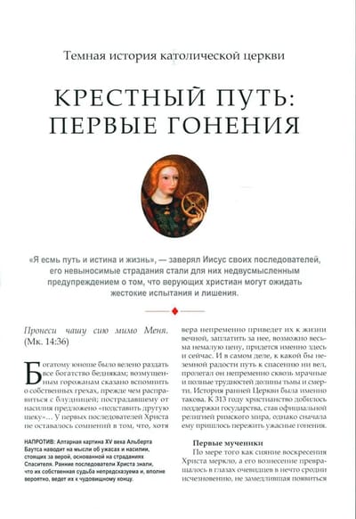Крупнейшая в мире христианская конфессия с 1,2 миллиарда членов, католическая церковь является старейшей в мире общественной организацией, которая сыграла ключевую роль в развитии западной цивилизации. Путь ее становления от иудейской секты до мировой религии весьма извилист: католическая церковь была преследуема и сама становилась преследователем, она обретала силу, но погрязала в коррупции, проповедовала моральную чистоту, но сама становилась участницей грязных скандалов. Данная книга проведет читателя от времен великих гонений на христиан в Древнем Риме сквозь века жестокой охоты на ведьм и еретиков знаменитого Великого инквизитора Торквемады до коллаборации Святого престола с нацистами во время Второй мировой войны и беспристрастно расскажет о ересях и погромах, матери Терезе и священниках — мучениках за веру, папских чистках и продажном духовенстве, лжепророках и безбожных понтификах.