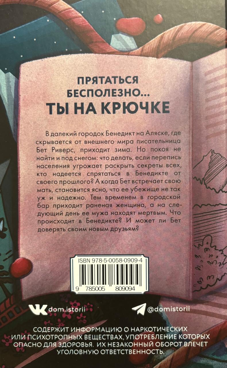 В далекий городок Бенедикт на Аляске, где скрывается от внешнего мира писательница Бет Риверс, приходит зима. Но покоя не найти и под снегом: что делать, если перепись населения угрожает раскрыть секреты всех, кто надеется спрятаться в Бенедикте от своего прошлого? А когда Бет встречает свою мать, становится ясно, что ее убежище не так уж и надежно. Тем временем в городской бар приходит раненая женщина, а на следующий день ее мужа находят мертвым. Что происходит в Бенедикте? И может ли Бет доверять своим новым друзьям?