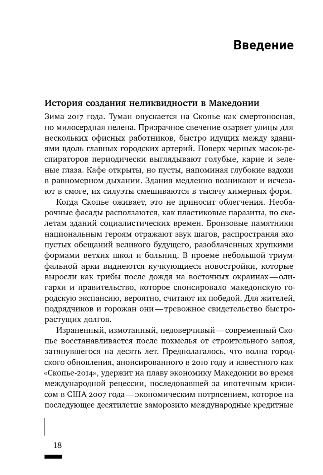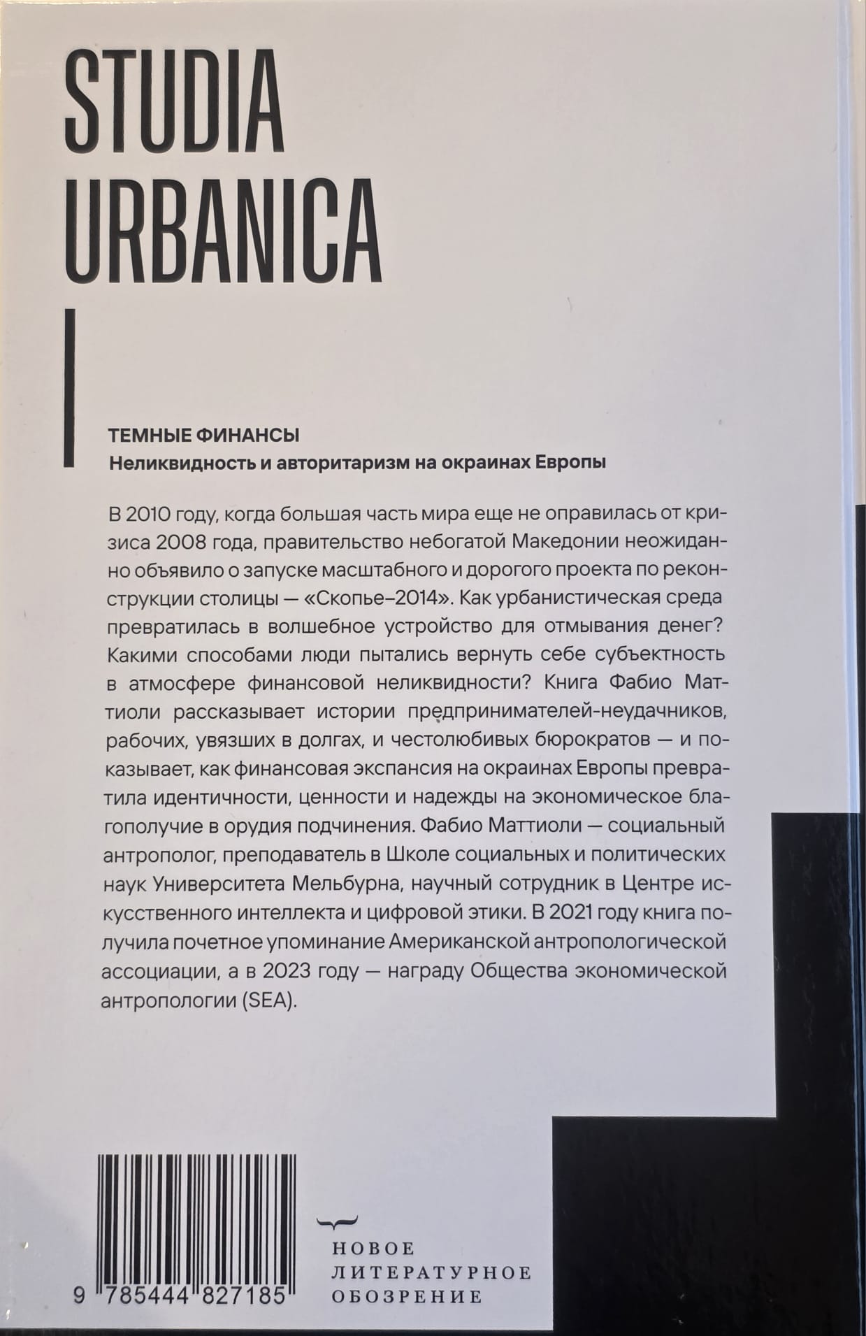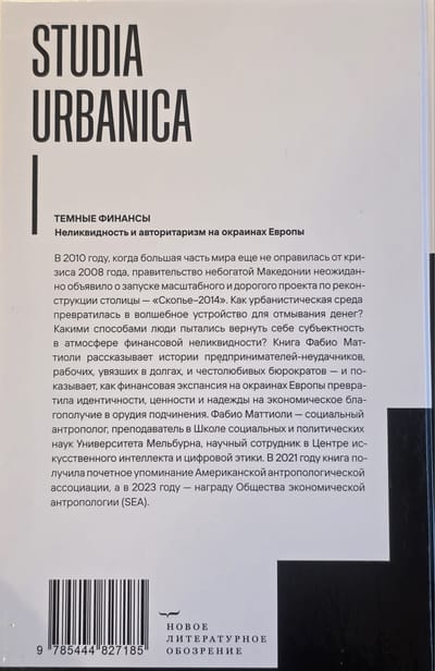 В 2010 году, когда большая часть мира еще не оправилась от кризиса 2008 года, правительство небогатой Македонии неожиданно объявило о запуске масштабного и дорогого проекта по реконструкции столицы — «Скопье–2014». Как урбанистическая среда превратилась в волшебное устройство для отмывания денег? Какими способами люди пытались вернуть себе субъектность в атмосфере финансовой неликвидности? Книга Фабио Маттиоли рассказывает истории предпринимателей-неудачников, рабочих, увязших в долгах, и честолюбивых бюрократов — и показывает, как финансовая экспансия на окраинах Европы превратила идентичности, ценности и надежды на экономическое благополучие в орудия подчинения. Фабио Маттиоли — социальный антрополог, преподаватель в Школе социальных и политических наук Университета Мельбурна, научный сотрудник в Центре искусственного интеллекта и цифровой этики. В 2021 году книга получила почетное упоминание Американской антропологической ассоциации, а в 2023 году — награду Общества экономической антропологии (SEA).