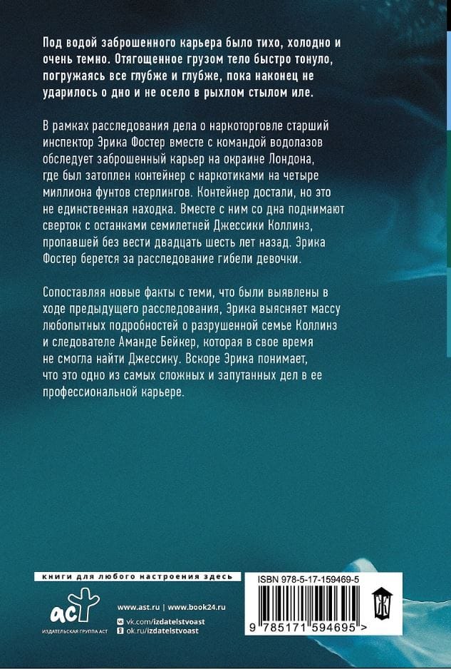 В рамках расследования дела о наркоторговле старший инспектор Эрика Фостер вместе с командой водолазов обследует заброшенный карьер на окраине Лондона, где был затоплен контейнер с наркотиками на четыре миллиона фунтов стерлингов. Контейнер достали, но это не единственная находка. Вместе с ним со дна поднимают сверток с останками семилетней Джессики Коллинз, пропавшей без вести двадцать шесть лет назад. Эрика Фостер берется за расследование гибели девочки.
