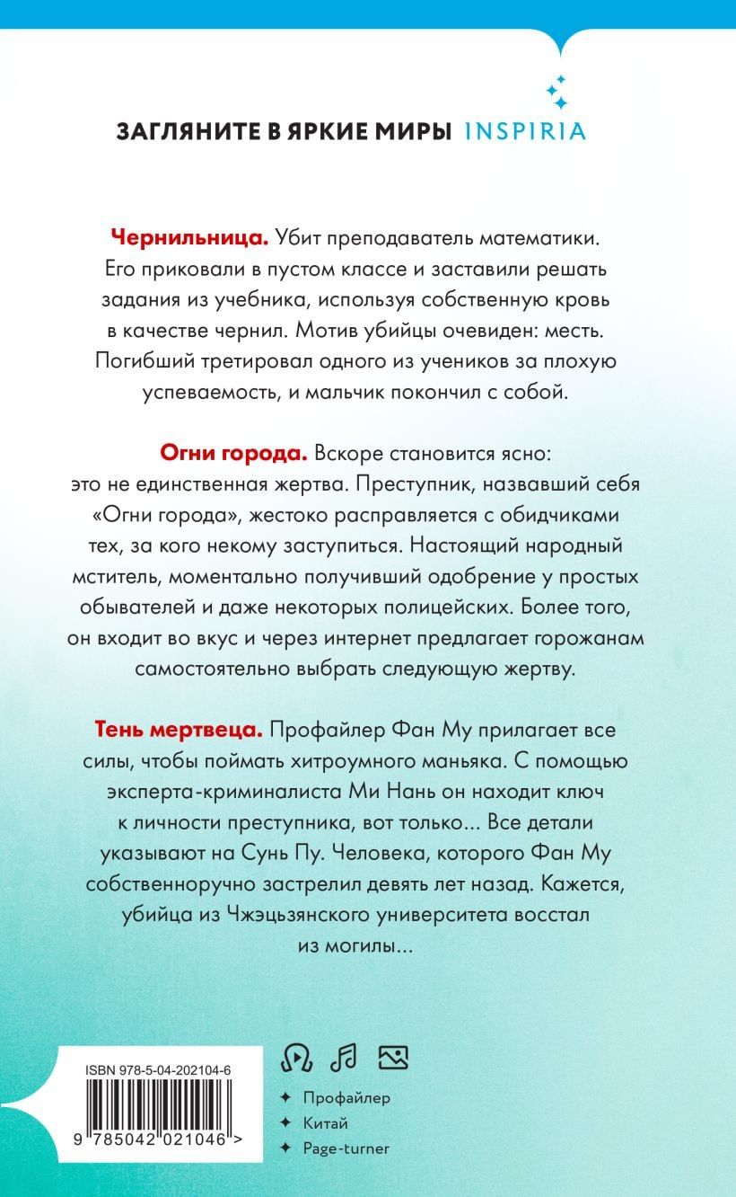 Национальный бестселлер Китая от преподавателя криминальной психологии у Университете уголовной полиции. Один из лучших образцов китайского Иямису — популярного в Азии триллера, исследующего темную сторону человеческой натуры. Идеальное сочетание «Внутри убийцы», «Токийского Зодиака» и «Молчания ягнят».