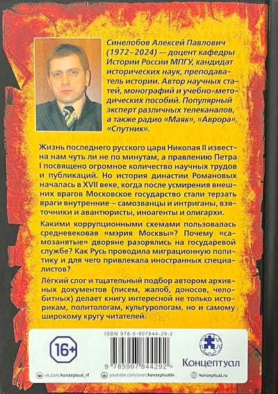 Жизнь последнего русского царя Николая II известна нам чуть ли не по минутам, а правлению Петра I посвящено огромное количество научных трудов и публикаций. Но история династии Романовых началась в XVII веке, когда после усмирения внешних врагов Московское государство стали терзать враги внутренние – самозванцы и интриганы, взяточники и авантюристы, иноагенты и олигархи. Какими коррупционными схемами пользовалась средневековая «мэрия Москвы»? Почему «самозанятые» дворяне разорялись на государевой службе? Как Русь проводила миграционную политику и для чего привлекала иностранных специалистов? Лёгкий слог и тщательный подбор автором архивных документов (писем, жалоб, доносов, челобитных) делает книгу интересной не только историкам, политологам, культурологам, но и самому широкому кругу читателей.
