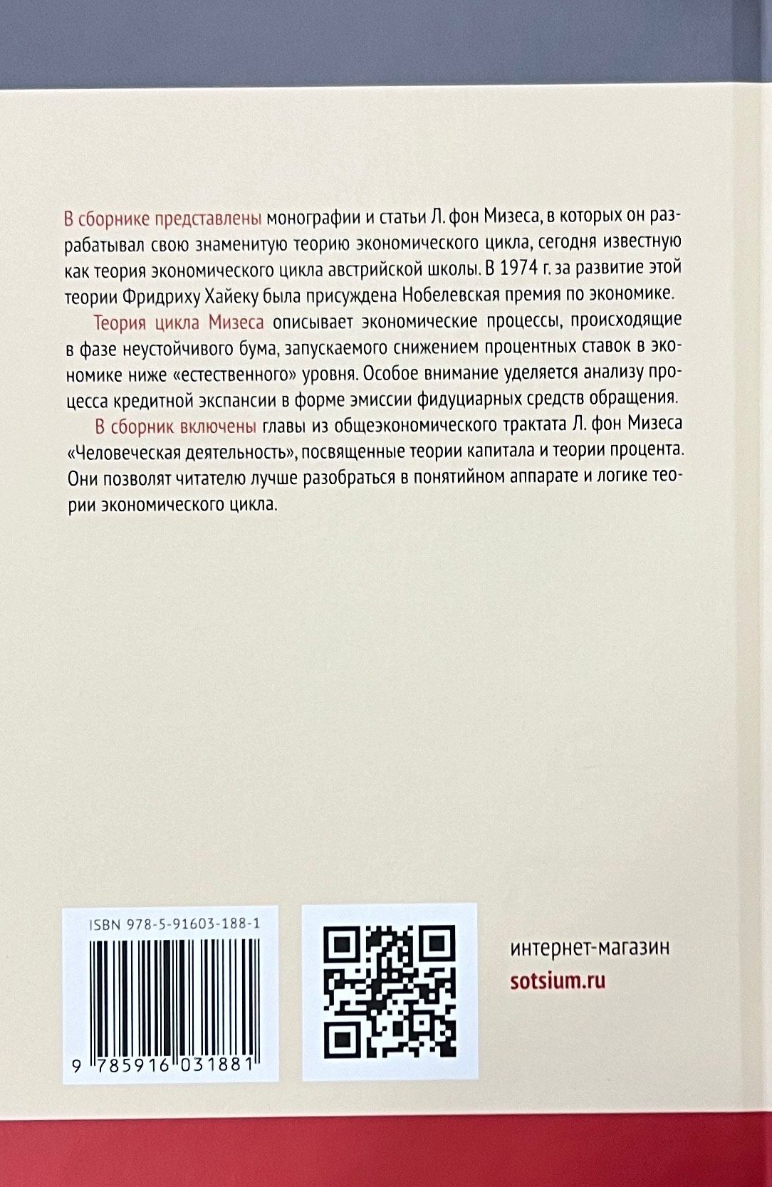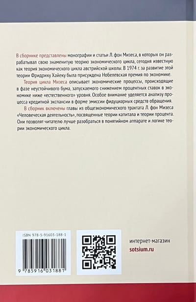 В сборнике представлены монографии и статьи Л. фон Мизеса, в которых он разрабатывал свою знаменитую теорию экономического цикла, сегодня известную как теория экономического цикла австрийской школы. В 1974 г. за развитие этой теории Фридриху Хайеку была присуждена Нобелевская премия по экономике. Теория цикла Мизеса описывает экономические процессы, происходящие в фазе неустойчивого бума, запускаемого снижением процентных ставок в экономике ниже "естественного" уровня. Особое внимание уделяется анализу процесса кредитной экспансии в форме эмиссии фидуциарных средств обращения. В сборник включены главы из общеэкономического трактата Л. фон Мизеса "Человеческая деятельность", посвященные теории капитала и теории процента. Они позволят читателю лучше разобраться в понятийном аппарате и логике теории экономического цикла.