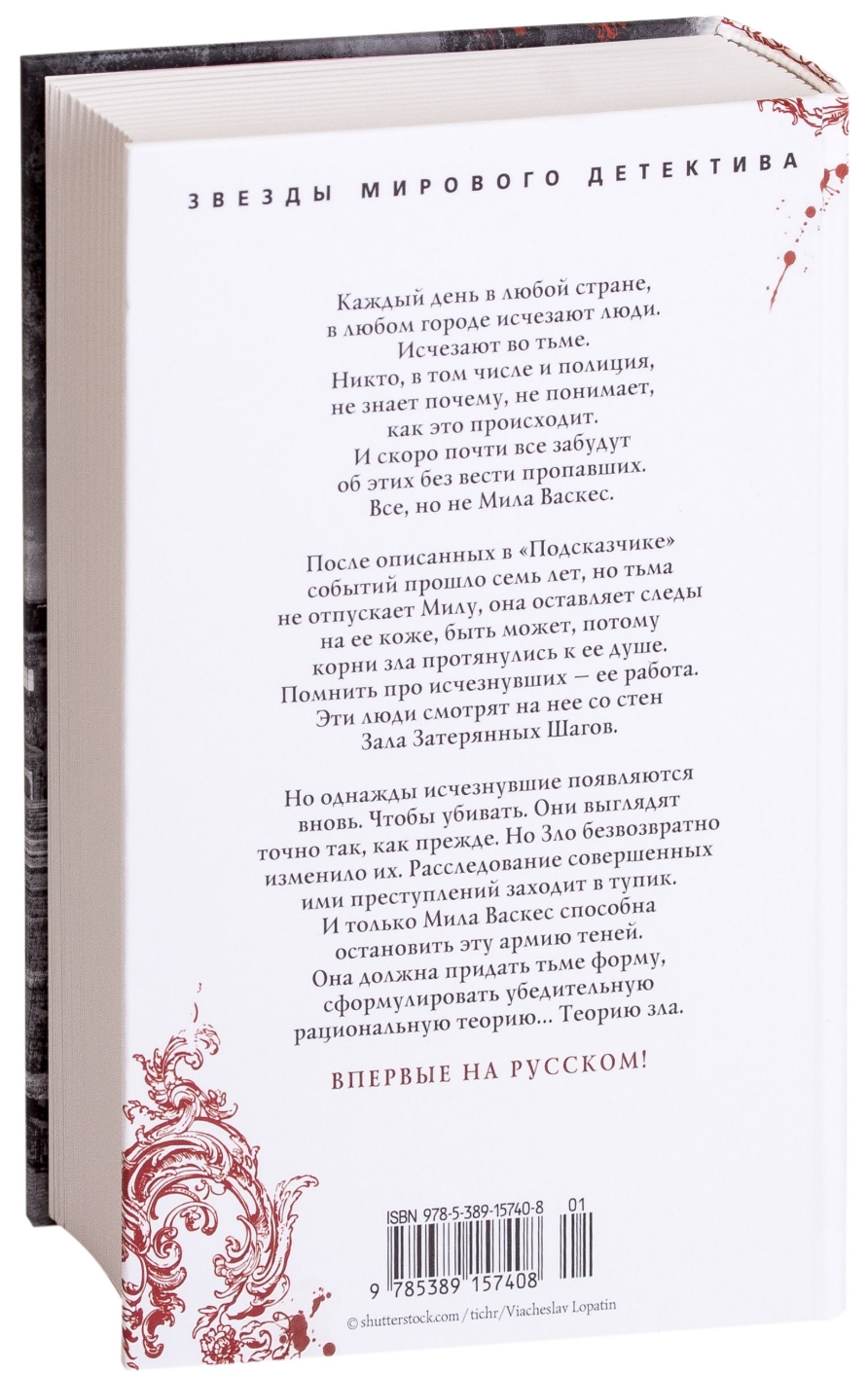 Каждый день, в любой стране, в любом городе исчезают люди. Исчезают во тьме. Никто, в том числе и полиция, не знает почему, не понимает, как это происходит. И скоро почти все забудут об этих без вести пропавших. Все, но не Мила Васкес. После описанных в «Подсказчике» событий прошло семь лет, но тьма не отпускает Милу, она оставляет следы на ее коже, быть может потому, корни зла протянулись к ее душе. Помнить про исчезнувших ее работа. Эти люди смотрят на нее со стен Зала Потерянных Шагов.